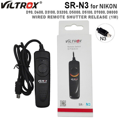 The Viltrox SR-N3 Wired Remote Shutter Release (1M) is designed for Nikon cameras , such as Nikon D90, D600, D3100, D3200, D5000, D5100, D7000, D8000. The wire uses thickened and bold earphone cable,