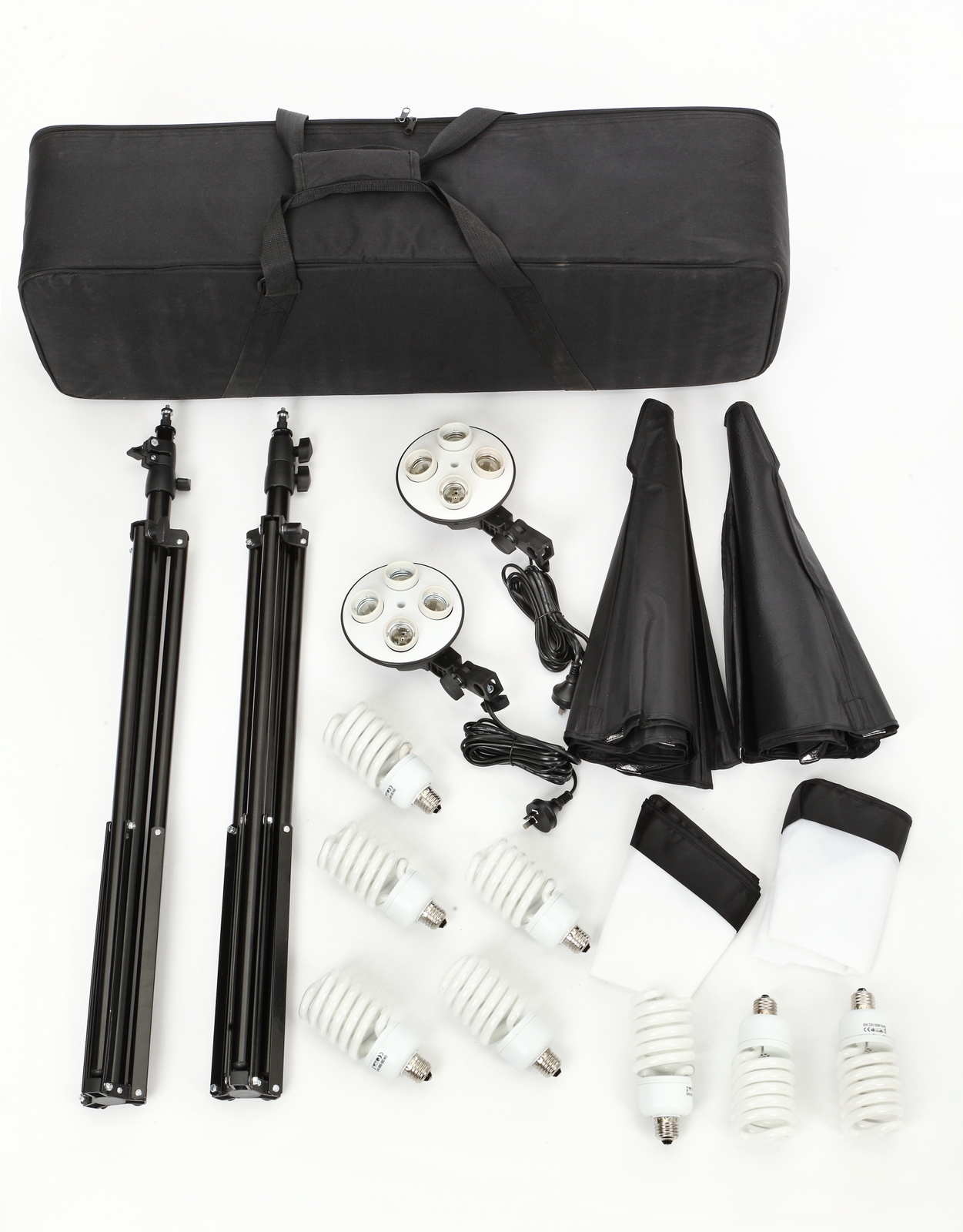5 x 65W 5 Bulb Head Soft Box Lights Single Fotogenic Soft Boxes are powered by 5 x 65W 5500K bright white bulbs (Equalivlent to 1625W of normal light) which is plenty of power to take portrait shots of the family, video interviewing, fashion photograp